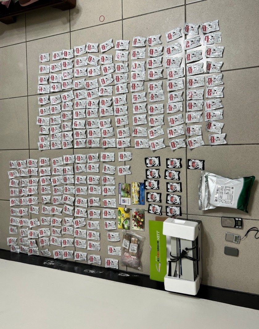 (一)楊梅分局3月14日破獲楊○○毒品咖啡包分裝場:楊梅分局日前溯源毒品案,經查知楊姓男子以製作毒品咖啡包販售牟利,長期偵蒐,經報請桃園地檢署檢察官指揮,循線查獲毒品咖啡包分裝場所,拘捕陳嫌,查扣毒品咖啡包244包1412.7公克、愷他命32包39.7公克、包裝袋2批、封口機1台、電子磅秤3台、橘子果汁粉2包、哈密瓜果汁粉1包等贓證物。