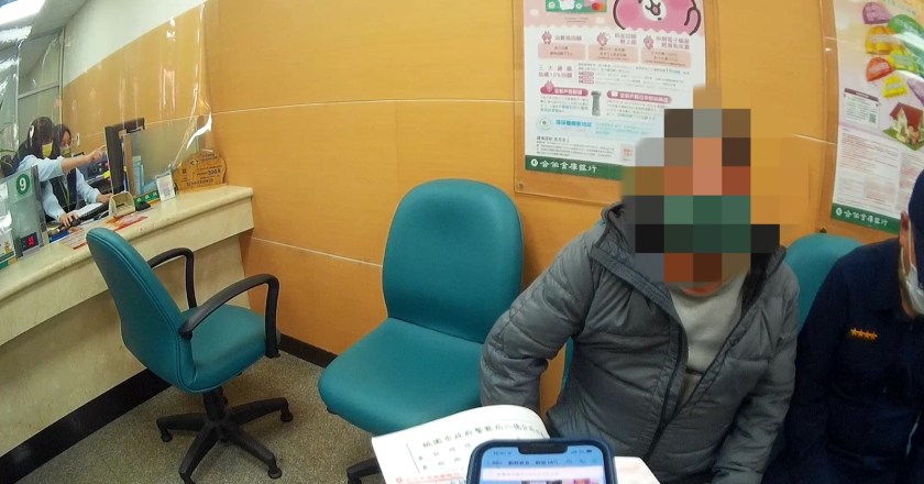八德分局四維所巡佐許曜麟、警員翁榮廷21日上午11時許接獲合作金庫銀行行員通報疑似有人遭到詐騙要匯款,立即趕往處理。