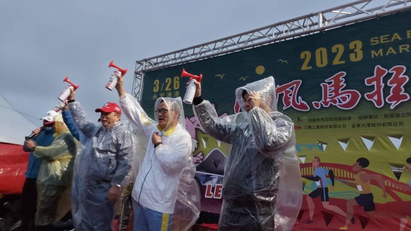 「2023海風馬拉松」26日在新屋永安海螺文化體驗園區熱鬧登場,由桃園市政府詹榮鋒秘書長出席開幕典禮及鳴槍儀式,市府體育局局長許彥輝等貴賓也一同到場為選手加油打氣,並感謝全國各地跑友對本賽事的支持與鼓勵。