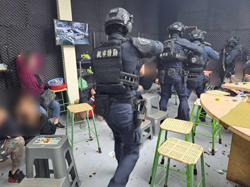 經報請臺灣桃園地方檢察署偵辦,另向法院申請搜索票獲准後,桃園市政府警察局督察室會同轄區平鎮警分局及保安警察大隊霹靂小組攻堅破門,當場查獲2名工作人員及33名賭客在內聚賭,現場共扣得賭資新臺幣1萬2100元、面額500元籌碼共計56萬7000元及天九牌等相關證物,警方訊後依賭博罪將工作人員送辦,其餘賭客則依違反社會秩序維護法裁罰。
