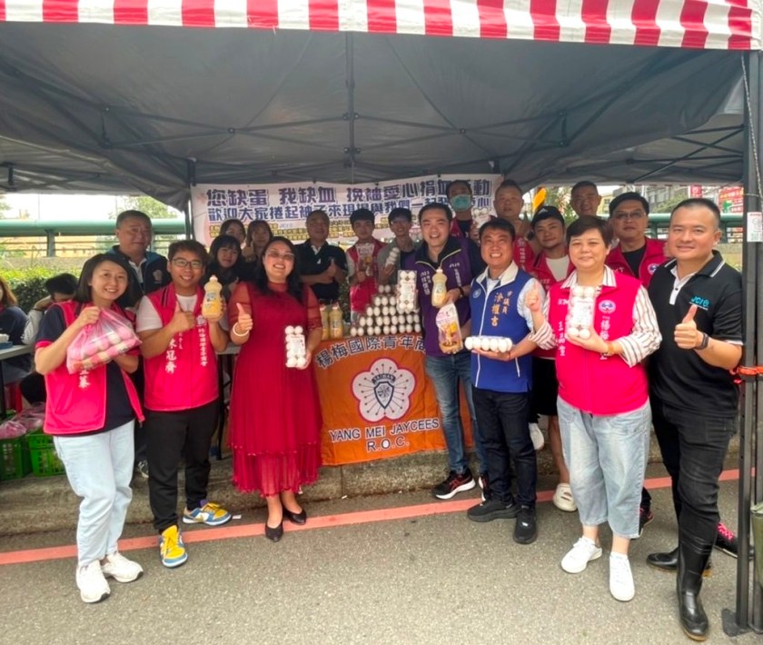 清明節是台灣重要的民俗節日,在楊梅地區也有一場重要的活動於當天進行,楊梅在地47年的國際社團–楊梅國際青年商會,5日在楊梅火車站前舉辦了一場,「您缺蛋,我缺血」,捲袖做公益的捐血活動。