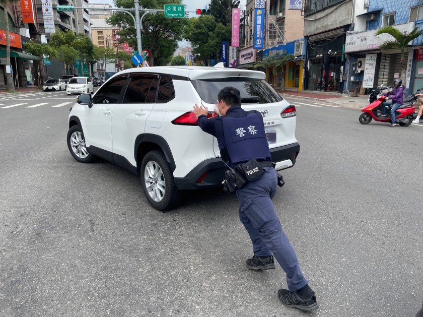 龜山區文化二路與公園路交叉口,一輛全新的白色自小客車熄火後無法發動。13日11時許,正在擔任巡邏勤務的大華派出所警員陳安如和許琮琪立刻上前關心。
