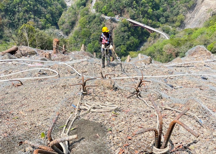目前大曼路段持續積極辦理邊坡修復作業中,現場已調派4組工班機組同步辦理邊坡刷坡掛網及噴漿護坡工程,截至目前邊坡修復完成總面積達30%約2.5萬平方公尺,後續將持續趕辦以提升邊坡抗災能力及道路安全。