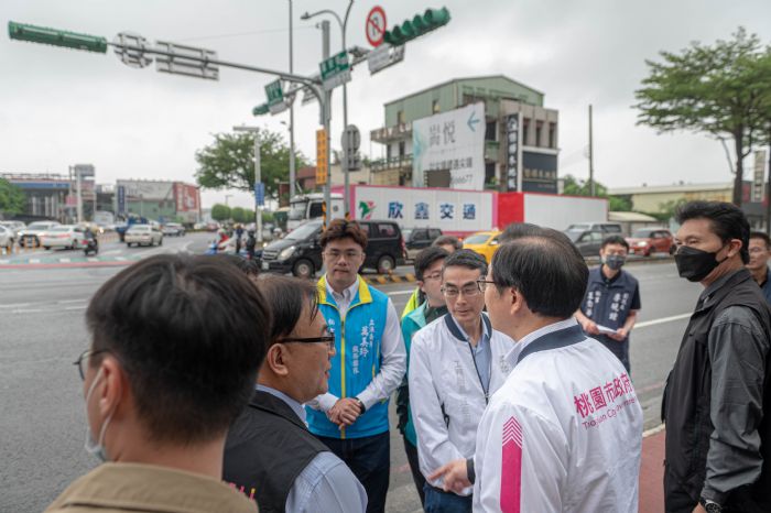 張局長提到,尖峰時段由國道二號交流道湧入桃園大興西路與文中路口的車流,藉由「偏心左轉路暢計畫」實施,國道2號交流道與大興西路三段380巷匯入的車流,可分別透過調整後車道配置,依循著分流式指向線駛入遵行車道,減少車流交織,降低側撞事故風險,全案總經費約535萬元,且僅花7天即完工。未來在正規路網建設之際,市府也將持續與各路權機關合作,在道路刨鋪、新闢時,一併進行標線改造,透過路口細部調整,提供用路人更順暢安全的行車環境。包括市議員黃家齊、黃瓊慧、市府交通局長張新福、副局長熊啟中、工務局長汪在宙、養工處副處長高必嫻、桃園區長陳玉明等均一同視察。