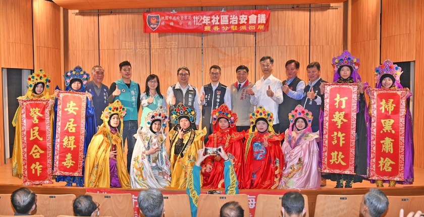 楊梅警分局為建立社區安全維護體系,強化治安、交安及犯罪預防觀念,適切回應民眾之需求及建議,於25日下午15時舉辦大型社區治安會議,由楊梅在地的永平工商表演藝術科同學開場帶來「川劇變臉」,氣勢滂礡的精彩表演獲得滿堂喝采,並於結尾時擺出「警民合作」、「打擊詐欺」、「肅槍掃黑」、「安居緝毒」等現階段警政治安重點工作的對聯揭開序幕,以展現出警方維護社會治安之決心。