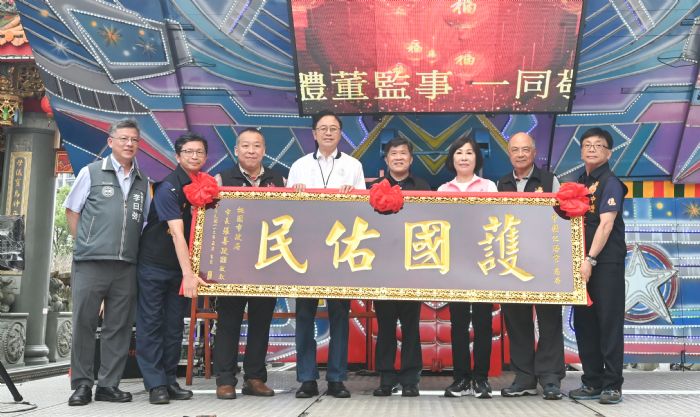 張市長指出,今日適逢媽祖聖誕,因此特地前來頒發「護國佑民」匾額1座,感謝中壢仁海宮長期以來的善行義舉,也期盼在地鄉親繼續支持仁海宮。