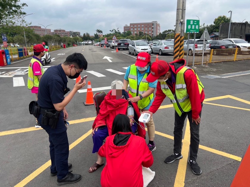 龍潭分局高平派出所警員林維紘、葉雲翔等2員獲報後立即趕往遊樂園。由於陳姓老婦口齒不清,詢問姓名、住址等均無法回答,也不知親屬聯絡方式。陳姓老婦不斷發抖,並表示胸腔疼痛、快喘不過氣,為防止意外發生,員警隨即通知救護車將老婦載往醫院觀察。在救護車路途中雖迷失老婦表達能力不佳且疑似重聽,惟經員警鍥而不捨地發揮敏銳思考,握緊老婦雙手不斷安撫顫抖不已的老婦,並由老婦隻言片語拼湊出完整姓名進行查找,家屬接獲通知後趕往醫院平安帶返。