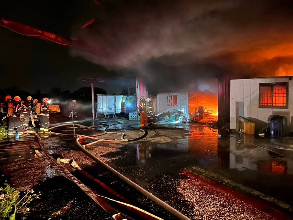 這座起火建築物為地上2層的鐵皮結構建築,起火點位於一樓車庫。據初步估計,火勢迅速蔓延,燃燒面積約達200平方公尺。該建築物內設有一家汽車烤漆廠,當時燃燒的物品包括烤漆設備和一些民生物品。