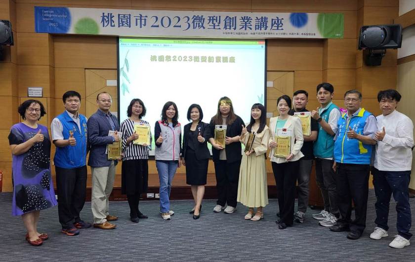 桃市府青年局局長候佳齡出席「2023微型創業講座」與貴賓合影。