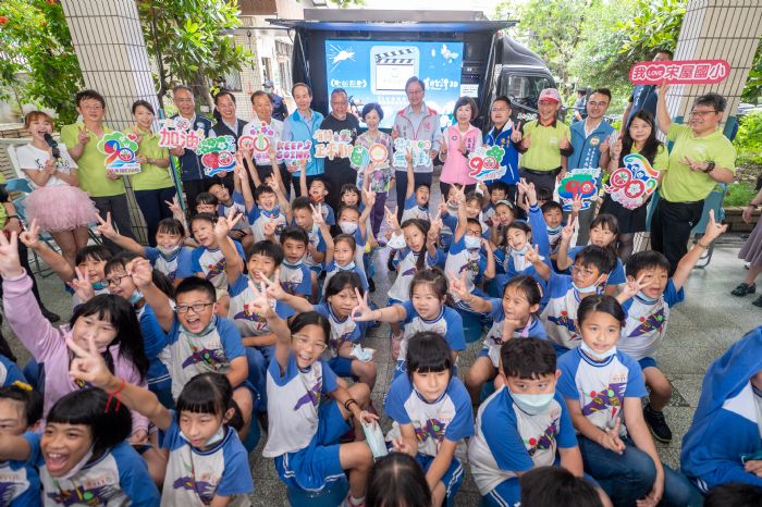 桃園市長張善政1日下午前往平鎮區宋屋國小,出席「美力臺灣3D行動電影院桃園學校巡演活動」。張市長表示,市府教育局自112學年度起,攜手「美力臺灣3D協會」,將在本市13區共80間學校,舉辦80場生命教育、環境永續教育行動電影院巡演,今日於宋屋國小舉行預演會,邀請師生共同欣賞「臺灣超人紀錄」及「美力臺灣3D」影片,也期盼透過校園巡演計畫,讓更多學童看見臺灣的環境與人文之美。