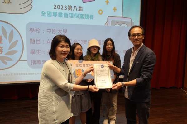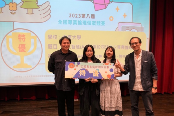 為了培養學生對專業倫理議題的重視,以及提高解決倫理困境的能力。備受關注的2023第八屆「全國專業倫理個案競賽」吸引來自全國19所大專校院、超過140組團隊報名參賽。歷經二個月的競賽過程,在初賽階段選出了22組獲頒入選獎的肯定,最後進入決審的12隊菁英近日齊聚中原大學張靜愚紀念圖書館秀德廳一較高下。中原大學財經法律學系以「人工智慧(AI)應用於司法中之專業倫理議題」獲頒唯一「特優獎」之殊榮。