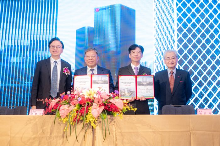 簽約典禮,包括市議員許更生、行政院農田水利署長蔡昇甫、農水署桃園管理處處長何明光、農水署石門管理處長林昆賢、前行政院長暨臻鼎最高經營顧問毛治國、市府參事黃治峯、都發局長江南志、經發局長張誠、建管處長邱英哲、中壢區長李日強、中原大學董事長張光正、中原大學校長李英明、元智大學校長廖慶榮、國立清華大學副校長簡禎富、臻鼎科技董事長沈慶芳、戴德梁行董事長顏炳立與各公司代表等均一同出席簽約典禮。
