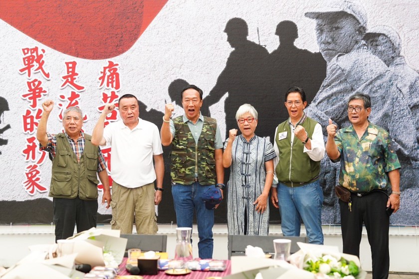 郭台銘10日一早,現身桃園「異域故事館」,在王根深會長帶領下,參訪了「亂」孤軍故事主題區,同時會面三位曾上過戰場,保衛國家的國軍英雄一一細數這段「異域孤軍」的悲壯歷史。