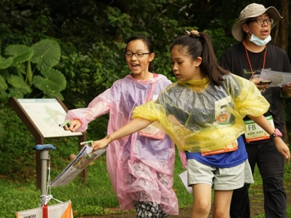 選手們在細雨中競逐於虎頭山公園,按照指定順序逐一找到定向旗完成打點。