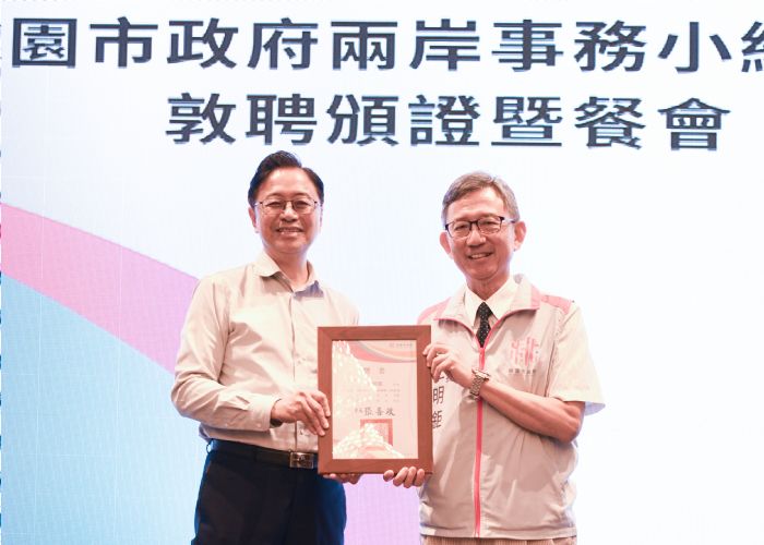 桃園市長張善政20日中午前往桃園區,出席「兩岸事務小組委員聘書頒贈」活動。張市長表示,桃園是工業大城,有許多台商在對岸發展,因此桃園籌組「桃園市政府兩岸事務小組」,希望一方面更妥善協助在大陸的桃園台商,二方面逐步推展與對岸的城市交流,更重要的是希望藉由地方政府正面推動的影響力,讓中央瞭解兩岸還有很多合作空間。