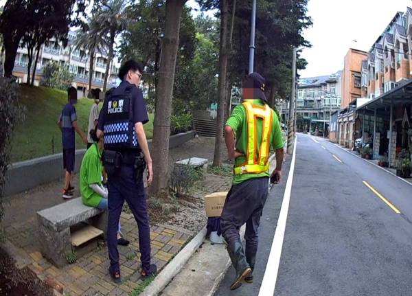 大園分局草漯派出所巡佐許庭祐、警員葉文顯,於25日13時許接獲民眾報案,在觀音區六和公園有一對男女在大聲爭吵,擔心後續會發生肢體衝突,請警方到場關心。