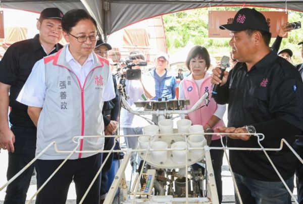 張善政指出,現今農業面臨天候異常、從業人員短缺及高齡化等挑戰,市府展現不一樣做法,鼓勵青農投入農業,也希望青農對新科技具有良好的掌握,積極推廣智慧農業,展現更好的效率,而其中最重要的便是引進自動化農機及培養智慧化能力,但是並非每位農友皆有能力引進智慧化農機具,因此市府號召有能力的青農成立「桃園智慧農耕團」,提供人力互助、農機租用、智慧機械等方式,協助農民的各項農事工作。