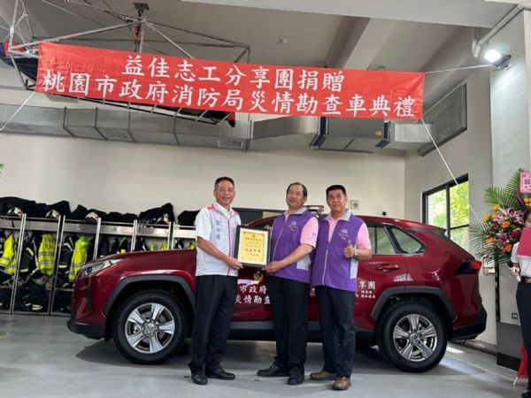 新屋消防分隊3日上午10時舉行捐贈典禮,局長龔永信代表該分隊受贈了一輛RAV4災情勘查車,並回贈了感謝狀。這次捐贈活動是由益佳志工分享團發起,該團在鄭福榮團長的領導下,一直積極參與地方公益活動,深切體認到同仁在救災和救護工作中的辛勞。在鄭福榮團長與志工團執行長兼新屋防火宣導隊的資深隊員陳佳惠小姐的共同努力下,他們以「益佳志工分享團」的名義發起了這次RAV4災情勘查車的募資捐贈活動,最終實現了這一捐贈,堪稱佳話。