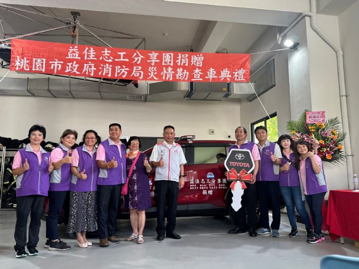 新屋消防分隊3日上午10時舉行捐贈典禮,局長龔永信代表該分隊受贈了一輛RAV4災情勘查車,並回贈了感謝狀。這次捐贈活動是由益佳志工分享團發起,該團在鄭福榮團長的領導下,一直積極參與地方公益活動,深切體認到同仁在救災和救護工作中的辛勞。在鄭福榮團長與志工團執行長兼新屋防火宣導隊的資深隊員陳佳惠小姐的共同努力下,他們以「益佳志工分享團」的名義發起了這次RAV4災情勘查車的募資捐贈活動,最終實現了這一捐贈,堪稱佳話。