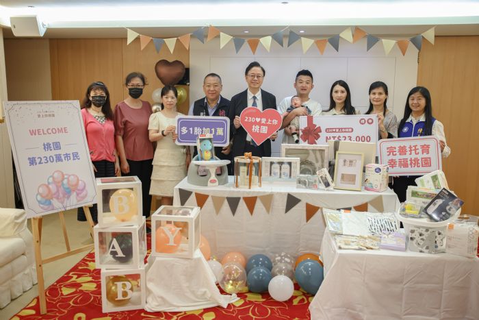 張善政表示,桃園市人口在109年初達到225萬後,在今(112)年6月7日正式突破230萬,而第230萬市民的幸運兒是今年5月20日出生的朱小弟,市府特別規劃「230愛上你桃園」慶祝桃園人口突破230萬大關。