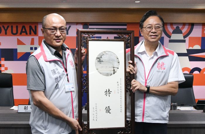 桃園市長張善政12日上午主持市政會議,接受環保局呈獻榮獲「111年度環境保護績效考核績優機關」。張市長表示,環保局在行政院環境保護署的環境保護績效考核,榮獲9座獎項殊榮,包括「環境保護績效考核總成績」特優、「環境影響評估與環境教育考核」特優、「水質保護及土壤整治考核」特優、「資源循環考核」特優、「推動因應氣候變遷行動考核」特優、「淨零綠生活考核」特優、「環境測定及綜合業務考核」優等、「垃圾處理及環境管理考核」優等及「空品維護與噪音管制績效考核」優等,整體表現優異值得讚許,期勉環保局持續引入科技、創新環保作為,為桃園爭取更多榮耀。