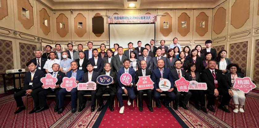 桃園市政府觀光旅遊局率桃園市旅館商業同業公會至日本九州地區推展桃園觀光旅遊,13日於福岡市,在台北駐福岡經濟文化辦事處陳銘俊處長的見證下,桃園市政府觀光旅遊局周柏吟局長、桃園市旅館商業同業公會邱照進理事長與福岡縣旅行業協會真武祐一會長簽訂三方觀光合作備忘錄(MOU),未來將針對自由行、團體旅遊及修學旅行等客群,透過兩地政府單位、旅館業及旅行業等產業公協會間之觀光經驗分享、旅遊產品包裝及行銷宣傳等多面向合作,深化觀光旅遊交流,為桃園及福岡兩地觀光開創國際新視野。