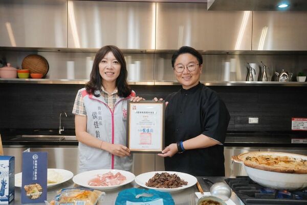 青年事務局侯佳齡局長(左)致贈感謝狀給林聰明沙鍋魚頭林佳慧執行長 (右)。