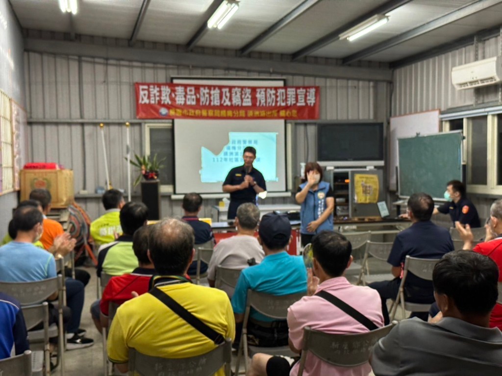楊梅分局頭洲派出所為落實推動社區警政再出發工作,加強宣導婦幼安全及反詐騙宣導,以強化民眾婦幼安全及犯罪預防等觀念,特於7月19日晚上19時在桃園市新屋區頭洲里辦公處辦理「家庭暴力、性侵害、性騷擾、跟蹤騷擾、兒童及少年性剝削」及反詐騙等,以提升民眾自主意識預防被害。蒞臨現場有新屋區頭洲里里長姜歐秀美、九斗里里長田換興、楊梅區雙榮里里長許時炫及立委黃世杰助理黃仁昭及市議員陳睿生服務處主任彭勝茂等及社區民眾多人參加。