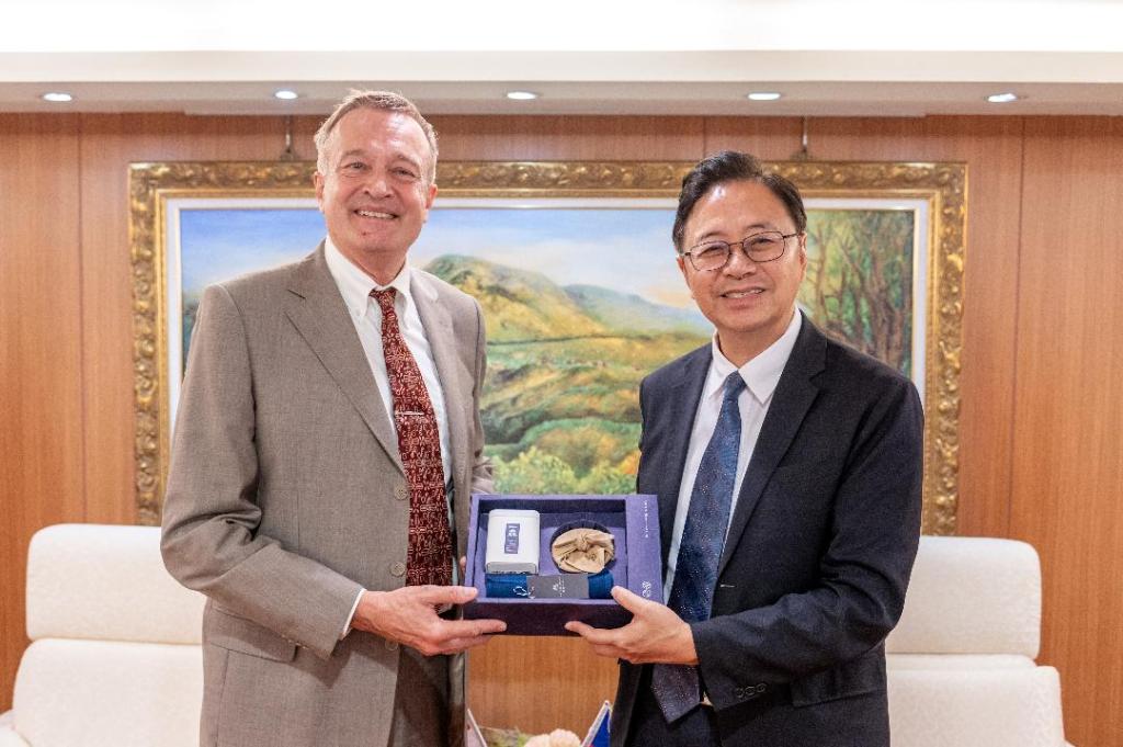 奧地利商務代表歐賀曼(Hermann Ortner)25日拜會張善政市長,針對新創、科技、產業、經貿及文化等面相進行討論,盼拓展多面向合作契機。張市長表示,桃園與奧地利都是重要工業據點,在產業發展上具互補性,桃園現今積極推動產業升級、智慧製造,奧地利廠商必能在其中扮演重要角色。