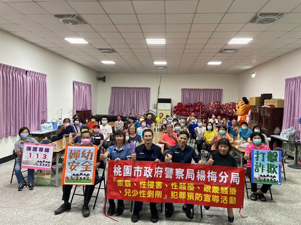 楊梅分局富岡派出所所長江禮安為落實推動社區警政再出發工作,使民眾充分了解轄區治安、婦幼安全維護等警政工作概況,透過刑案偵防反詐騙,剖析最新犯罪模式及發生原因,與防制作為及成效,以強化民眾婦幼安全及犯罪預防等觀念,於7月24日晚上至楊梅區員本社區發展協會辦理「家庭暴力、性騷擾、跟蹤騷擾、兒童及少年性剝削」及交通安全、反詐欺等宣導會,列席有員本里里長陳奕霖、社區發展協會理事長黃美華及分局防治組組長吳黨元暨社區民眾約50名民眾熱情參與,警方加強宣導反詐騙如何識詐、交通安全(路口停讓行人、遠離大型車) 等方面做重點說明及113專線婦幼安全宣導,藉以凝聚關心社區治安共識,提升自我防詐、婦幼人身安全等保護意識。