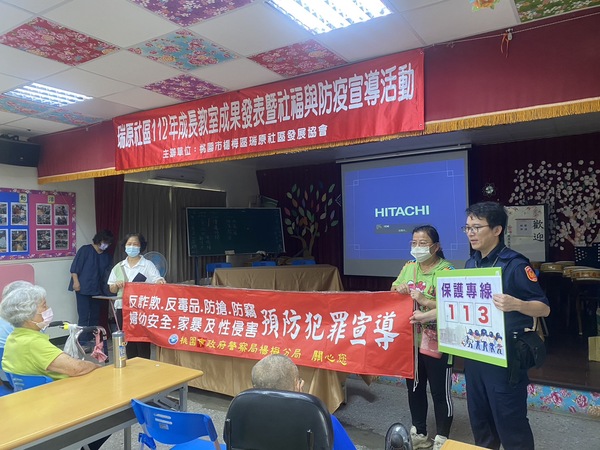 桃園市政府警察局楊梅分局為落實推動社區警政再出發工作,加強宣導婦幼安全及反詐騙等宣導,以強化民眾婦幼安全及犯罪預防等觀念,該分局上湖派出所所長陳赯麒除平時利用勤餘走訪轄區與瑞原里里長黃定宏交換保護婦幼、交通安全、反詐騙等犯罪預防宣導知識,以支持阻詐行動,互動良好外,並於8月2日至楊梅區瑞原社區發展協會辦理「家庭暴力、性騷擾、跟蹤騷擾、兒童及少年性剝削婦幼安全及反詐欺」等宣導,現場有瑞原社區發展協會葉理事長及社區民眾多人參加。