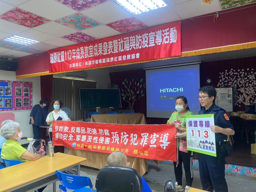 桃園市政府警察局楊梅分局為落實推動社區警政再出發工作,加強宣導婦幼安全及反詐騙等宣導,以強化民眾婦幼安全及犯罪預防等觀念,該分局上湖派出所所長陳赯麒除平時利用勤餘走訪轄區與瑞原里里長黃定宏交換保護婦幼、交通安全、反詐騙等犯罪預防宣導知識,以支持阻詐行動,互動良好外,並於8月2日至楊梅區瑞原社區發展協會辦理「家庭暴力、性騷擾、跟蹤騷擾、兒童及少年性剝削婦幼安全及反詐欺」等宣導,現場有瑞原社區發展協會葉理事長及社區民眾多人參加。