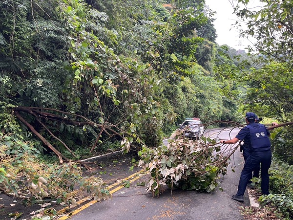 經轄區高平派出所、聖亭派出所員警到場查看,發現兩路段邊坡路樹皆因颱風帶來的強風豪雨,倒塌於路面導致雙向皆無法通行,兩所員警到場後皆先將警車警示燈開啟,提醒用路人避免過往人車發生事故,隨即下車於現場擺放交通錐並進行交通疏導,通知相關單位前來處理。現場員警為避免倒塌路樹造成其他事故發生,先以徒手移除路樹,雖該方式較為克難,但仍順利將該路樹移到路旁。兩起路樹倒塌皆迅速於半小時內清除,恢復通行,路過民眾對於現場員警不畏危險、積極的處置作為表示肯定與讚許。