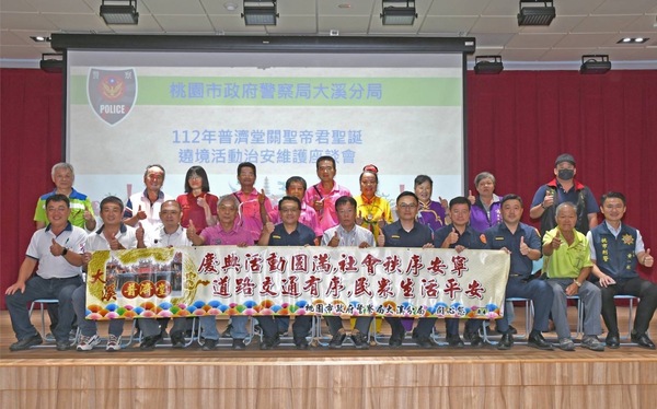 大溪區著名廟宇普濟堂慶祝關聖帝君誕辰節日社團遶境活動,訂於8月9、10日兩天熱鬧舉行,屆時將舉辦迎神遶境及宗教民俗技藝活動,為共同守護大溪優質宮廟及陣頭文化,大溪分局針對參加繞境社團進行約制及活動期間實施相關交通管制措施,讓此次迎神繞境活動圓滿順利。