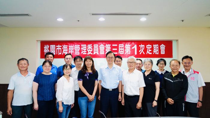桃園市海岸管理委員會於(9)日召開第三屆第1次定期會,由市長張善政親自頒發聘任證書,本屆委員總計21位,任期2年,其中生態保育及環境教育類4位、文化資產及景觀營造類3位、災害防救及污染防治類4位,共計11位專家委員,機關委員由海洋委員會海洋保育署、經濟部水利署第二河川局、內政部營建署城鄉發展分署、桃園市政府等8位簡任層級以上人員兼任,民間代表委員2位,委員會兼顧性別平權及專業領域。
