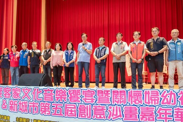 桃園市長張善政12日上午前往楊梅區,出席「客家文化音樂饗宴暨關懷婦幼社會福利&新城市第五屆創意沙畫嘉年華」。張市長表示,楊梅區新城市促進會主辦結合客家文化音樂與兒童創意沙畫的活動,現場反應熱烈,每張桌子都客滿,剛剛逐桌參觀了小朋友們的沙畫創作,作品都很有意思,也看到大家玩得非常盡興,感謝在地議員、里長及協會用心籌辦,也感謝各位鄉親、家長和小朋友們一同支持這項有意義的活動。