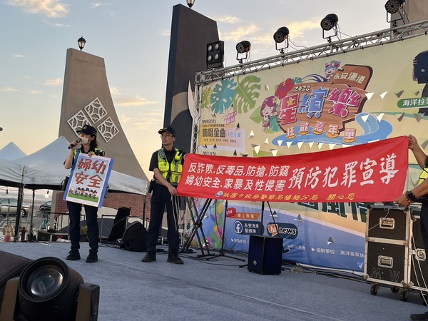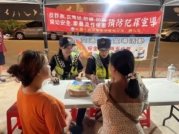 而正值暑假期間,桃園市政府警察局楊梅分局也派員警到活動現場設置攤位,針對拒絕性騷擾婦幼安全及反詐騙、交安等重點警政工作加強宣導,現場藉由小遊戲與現場民眾互動,寓教於樂。