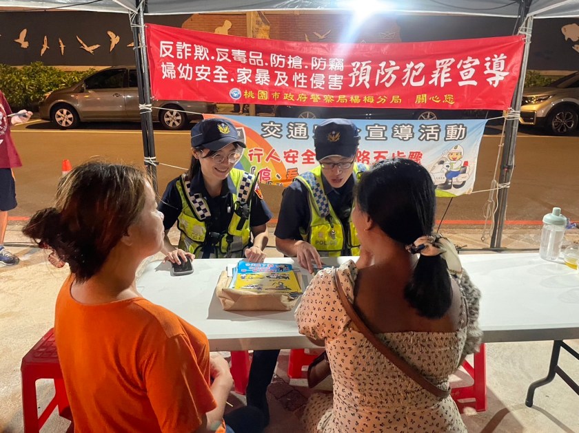 而正值暑假期間,桃園市政府警察局楊梅分局也派員警到活動現場設置攤位,針對拒絕性騷擾婦幼安全及反詐騙、交安等重點警政工作加強宣導,現場藉由小遊戲與現場民眾互動,寓教於樂。