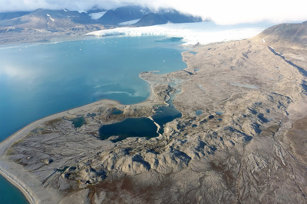 中央大學張文和助理教授空拍的北極冰川消融情形。