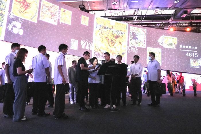 蔡總統抵達第四展區「攜手前行」時,也親自體驗結合科技應用與沉浸式體驗的「光域漫遊環形裝置」,此竹編環形劇場18公尺,為全台最大室內裝置藝術,蔡總統透過手機掃描,生成有自己姓名的獨特圖像。