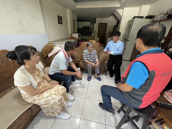 客家局長林昭賢、楊梅區長施永恭及楊政道老師生前好友一同前往楊家慰問楊政道母親-楊吳甜妹。