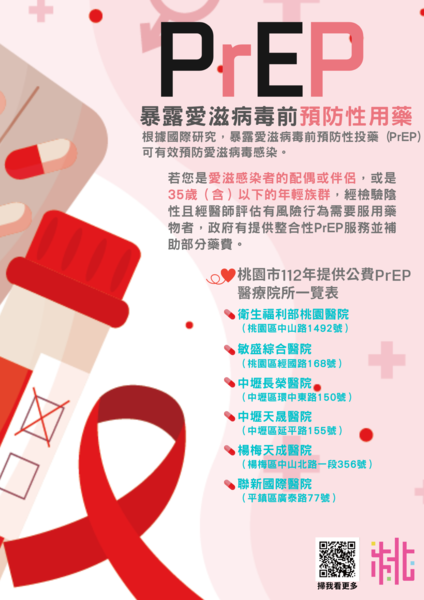 除了安全性行為外,暴露前預防性投藥(PrEP)計畫也是近年的防治愛滋病毒利器之一,透過穩定持續服用PrEP,讓體內有足夠的藥物濃度預防愛滋病毒感染,保護力可達90%以上。今年桃園市共有6家醫療院所提供PrEP服務,截至8月18日共計收案服務287人,較去年成長60%。目前針對愛滋感染者之配偶或伴侶、35(含)歲以下年輕族群,檢驗確認未感染愛滋病毒,經醫師評估符合資格者,即可申請公費的PrEP整合式服務,搭配性行為時使用保險套及水性潤滑液,可有效降低感染風險,同時預防感染愛滋病毒和其他性傳染病。