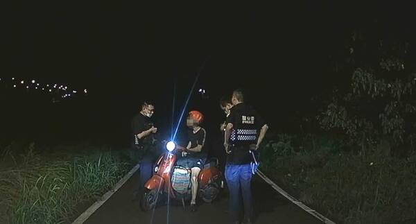 大園分局新坡派出所警員黃光暐、江文來、實習生楊凱斌,22日23時許巡邏行經快速路七段與新文路口時,看見黃男騎乘電動車要從小巷出來,但他見到警車隨即後退想要離開現場,可疑的舉動引起員警注意,立即上前將他攔查。