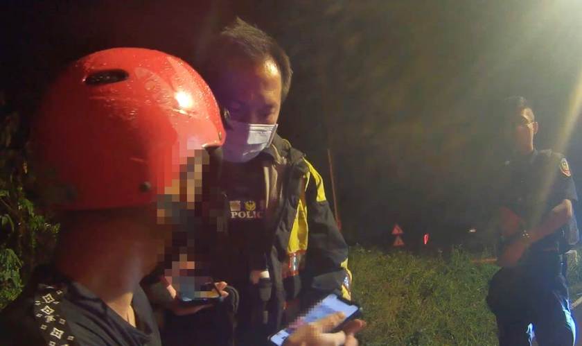 大園分局新坡派出所警員黃光暐、江文來、實習生楊凱斌,22日23時許巡邏行經快速路七段與新文路口時,看見黃男騎乘電動車要從小巷出來,但他見到警車隨即後退想要離開現場,可疑的舉動引起員警注意,立即上前將他攔查。