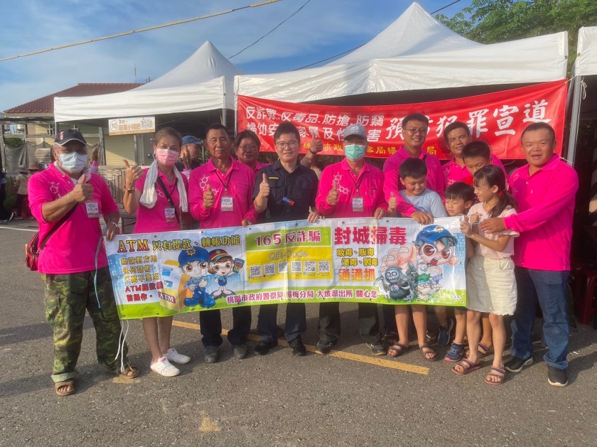 桃園市新屋區愛鄉協會與桃園市政府海岸管理工程處於8月27日10:30-18:30在新屋石滬故事館舉辦2023滬不相浪「石滬藝術文化祭」活動,桃園市政府警察局楊梅分局大坡派出所所長徐偉修為落實推動社區警政再出發工作,也率員到場設攤宣導「家庭暴力、性騷擾、跟蹤騷擾、兒童及少年性剝削、交通安全及反詐欺」等。