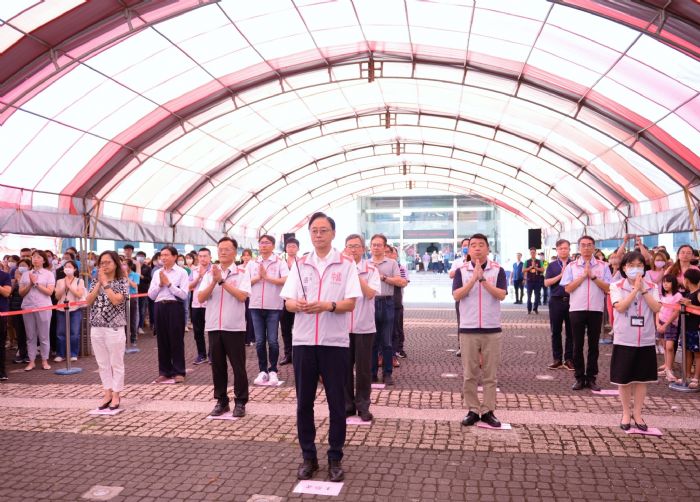 張善政市長指出,為落實公部門帶頭推動2050淨零轉型並配合環境部所推廣的「環保祭祀」,本次普渡特別要求各局處準備供品時,務必以少包裝多蔬果為原則,市府同仁發揮巧思,以可愛風素三牲、素元寶祭拜;此外,由市長代表上香,其餘同仁以雙手合十,減少線香之使用,在誠心祭拜之際也能顧及環境保護。