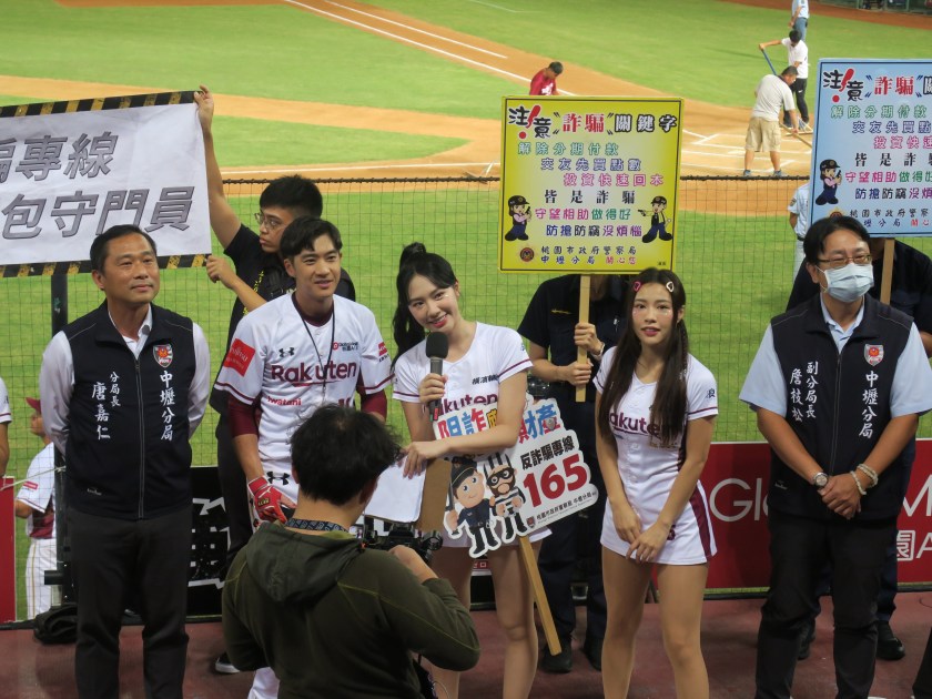職棒桃園啦啦隊向來是球迷關注焦點,樂天桃猿棒球隊秉持回饋社會的精神,特別邀請中壢分局與樂天女孩(Rakuten Girls)共同提醒球迷反詐觀念,希望民眾一起成為「錢包守門員」,球場中也以大螢幕播放警政署所拍攝的反詐欺宣導影片,教導球迷如何識別詐欺手法。