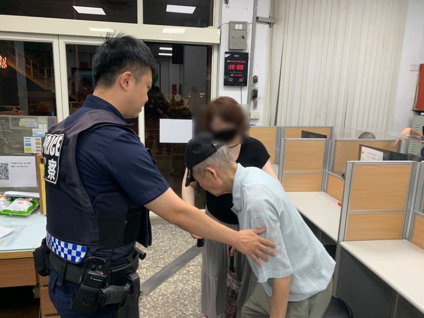 經過員警耐心的詢問,總算得知老翁的姓名,再利用警用系統比對,終於順利聯繫上老翁的家人,老翁的女兒接到通知趕到派出所,見到父親平安無恙,頻頻道謝並向警方表示,父親雖然年事已高,但身子硬朗,平時都有運動的習慣,傍晚家人發現父親未在家中,除了全家出動尋找外,也有報警協尋,所幸這次有警方熱心的協助,不然後果不堪設想。
