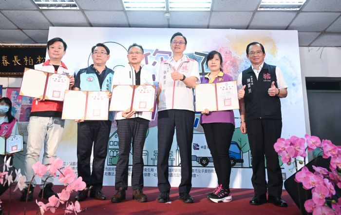 張市長與貴賓一起手持工具刮除泡沫,象徵洗刷掉對無家者的偏見,並表揚長期投入街友服務的公私部門及企業,共計17名有功團體及個人,以及2名脫遊楷模;現場也由社會局結合就業服務處提供就業諮詢、警察局識詐宣導團進行反詐騙宣導、桃園市女子美容商業同業公會提供理髮服務、桃園療養院進行健康衛教,並搭設「好桃洗」關懷專車,為街友提供沐浴服務及換洗衣物。