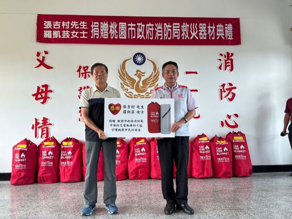 隨著中央宣布2040年汽油車即將絕跡,台灣電動車的掛牌數逐年攀升,但近年電動車火災頻傳,除藝人林志穎駕駛特斯拉發生車禍險些喪命外,近日美國也因電動車燃燒造成5名消防人員受傷。桃園消防第二大隊5日獲贈電動車防火毯11組,捐贈者張吉村先生與羅凱芸女士已於去年9月捐贈消防局高階監護電擊器,同年11月再捐贈聯新醫院緊急醫療車一部,本次再度慷慨解囊,並由局長龔永信代表受贈。